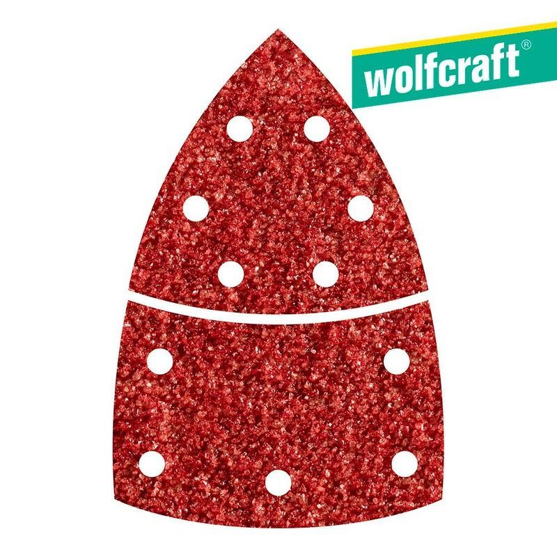 Hoja abrasiva adhesiva Wolfcraft, ideal para lijado de madera y metal. Con forma triangular y perforaciones para una mejor sujeción, ofrece un acabado preciso y duradero. Fabricada con material abrasivo de alta calidad, es perfecta para trabajos de bricolaje y acabados profesionales. Incluye 2 piezas por paquete.