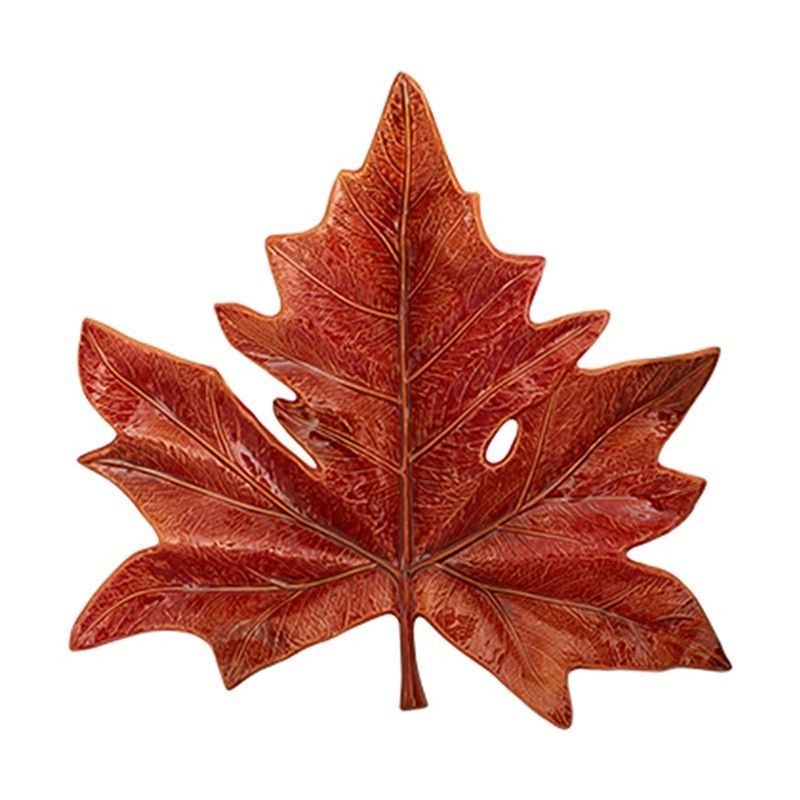 Adorno de pared en forma de hoja de arce XL, fabricado en loza de alta calidad con acabado brillante y color marrón rojizo. Ideal para decorar espacios con estilo natural y rústico. Su diseño detallado con venas y textura realista aporta un toque auténtico a cualquier hogar. Perfecto para colgar en paredes de salones, cocinas o entradas.