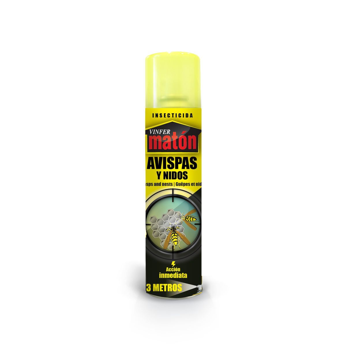 Insecticida spray Matón para avispones y nidos, con alcance de hasta 3 metros. Ideal para eliminar avispas de forma rápida y eficaz en jardines, terrazas o espacios exteriores. Fórmula potente que actúa de inmediato. Envase práctico y seguro para uso doméstico.
