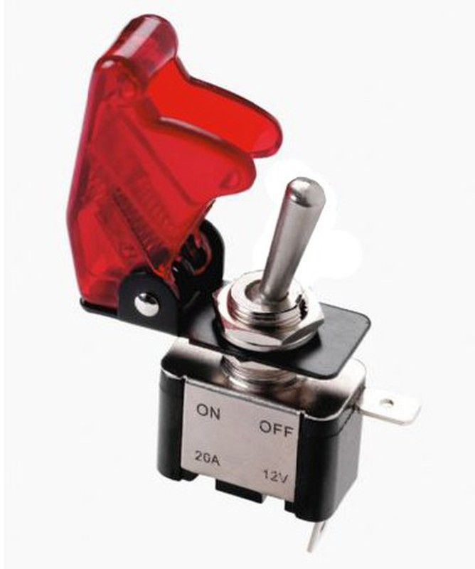 Interruptor Tuning 'Top-Gun' sin luz, ideal para vehículos motorizados. Fabricado con acero inoxidable y plástico resistente, ofrece una operación segura y duradera. Con capacidad de 26A y 12V, incluye cubierta roja translúcida y palanca metálica. Perfecto para sistemas eléctricos de coches, motos o vehículos off-road. Fácil instalación y diseño ro