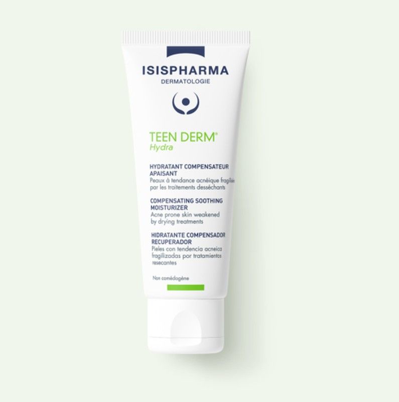 Isispharma Teen Derm Hydra, hidratante compensador para pieles jóvenes con tendencia acnéica debilitadas por tratamientos secantes. Fórmula suave y sin comedogénica, ideal para adolescentes con piel sensible. Ayuda a restaurar la hidratación y calmar la piel. Tubo de 100 ml, fácil de usar y adecuado para rutinas diarias de cuidado facial.