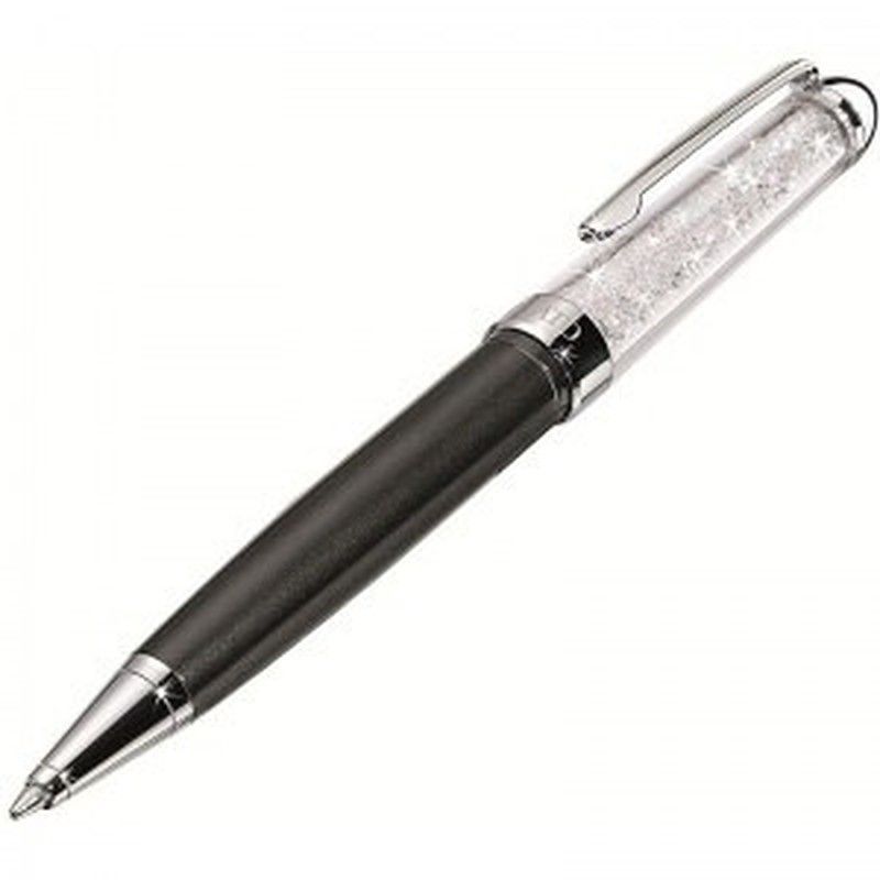Bolígrafo J010646 con cuerpo negro mate y tapa transparente con efecto madreperla, detalles metálicos plateados y clip elegante. Ideal para regalos corporativos, eventos especiales o uso diario. Combina estilo y funcionalidad en un diseño sofisticado y duradero.