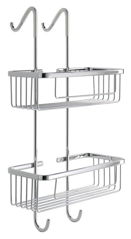 Jabonera doble para mampara de ducha AC-54 Pyp, fabricada en acero inoxidable de alta calidad. Diseño moderno con dos cestas de rejilla para organizar jabón, champú y accesorios de baño. Incluye ganchos curvos para colgar fácilmente en la mampara. Ideal para baños pequeños o espacios reducidos. Resistente a la humedad y fácil de limpiar.