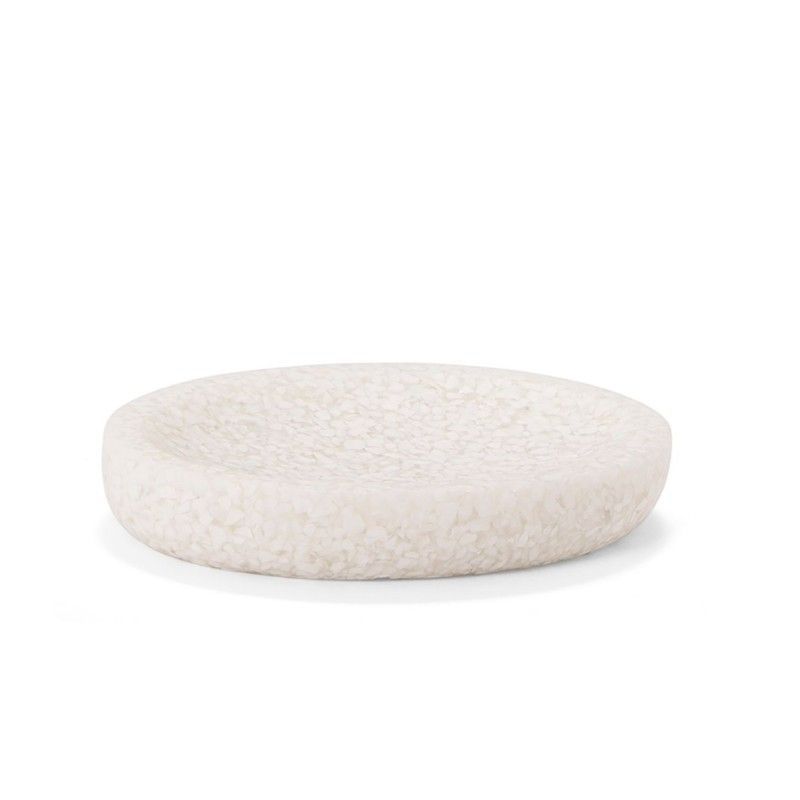 Jabonera redonda en efecto gres blanco, ideal para baños modernos y elegantes. Fabricada en cerámica de alta calidad, presenta una superficie texturizada y acabado mate que combina estilo y funcionalidad. Perfecta para mantener el jabón seco y prolongar su vida útil. Dimensiones: 15x10,5x2,5 cm. Un accesorio esencial para tu baño con un toque de so