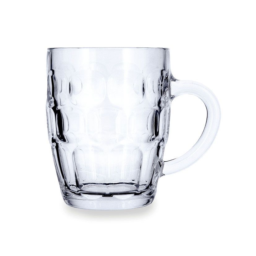 Jarra de cerveza de 56 cl en vidrio transparente con diseño texturizado en relieve, ideal para disfrutar de cervezas con espuma. Su asa curva y base ancha garantizan un agarre seguro y estabilidad. Perfecta para uso en casa, terrazas o eventos sociales. Calidad duradera y fácil de lavar.