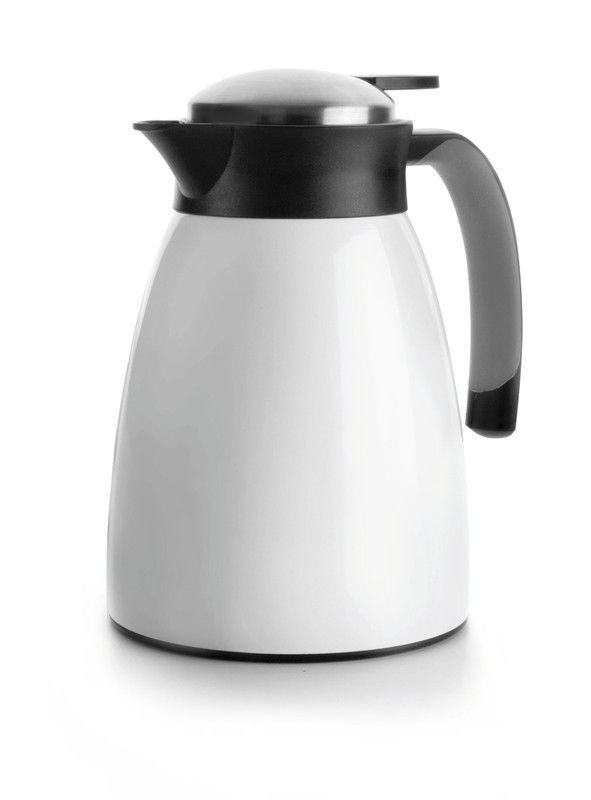 Jarra termo blanca de 1 litro de Lacor, ideal para mantener el café caliente durante horas. Fabricada en acero inoxidable con acabado elegante y asas ergonómicas para un manejo cómodo. Perfecta para uso diario en casa o en la oficina, con diseño moderno y funcional. Incluye tapón hermético para evitar derrames.