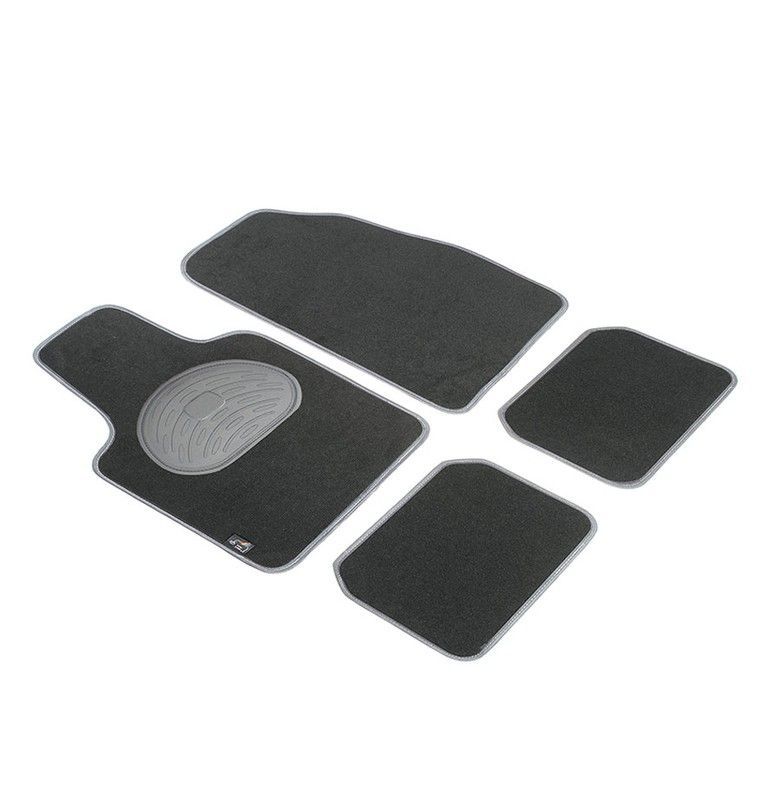 JGO. 4 ALFOMBRAS MOQUETA "SELECT" NEGRA TALONERA GOMA COLOR GRIS