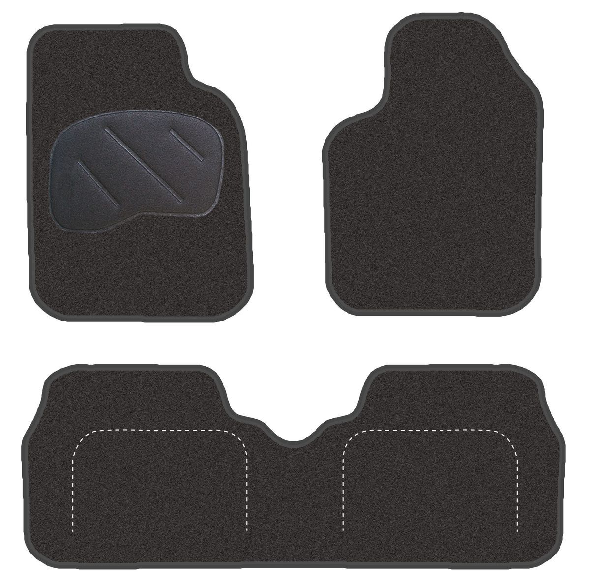 Alfombrillas JGO Diamond Jaspeada para Renault Megane Scenic (11/96-5/03) en color negro, fabricadas en poliéster con base antideslizante de goma. Diseño específico para un ajuste perfecto, con costuras decorativas blancas en la parte trasera. Protegen el interior del coche y mejoran la estética. Ideales para conductores que buscan calidad y funcio