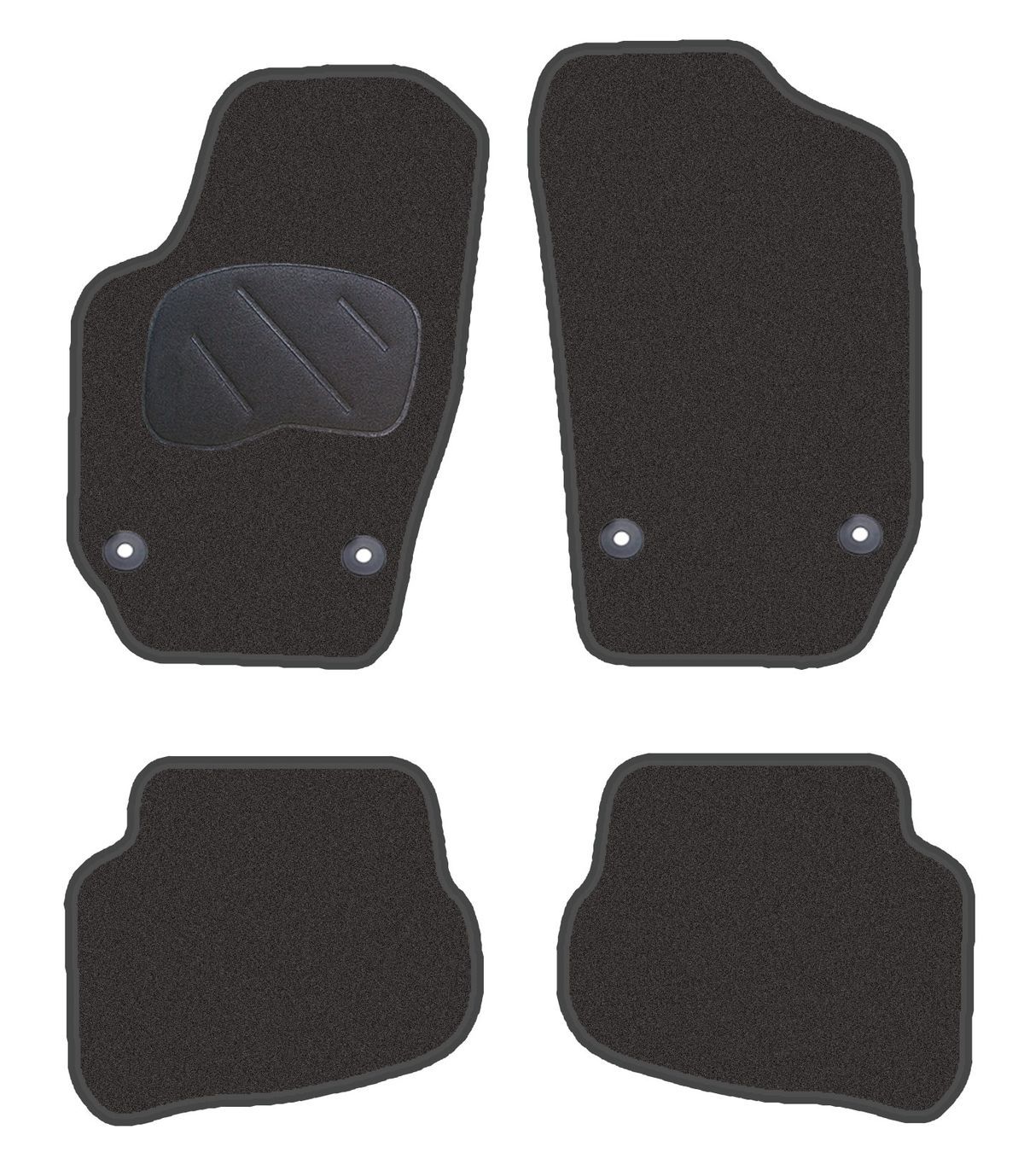 Alfombrillas JGO Diamond Jaspeada para Seat Ibiza y Cordoba (02-09), fabricadas en textil de alta calidad con borde de goma antideslizante. Diseño ajustado con zona reforzada en el conductor para mayor durabilidad y fácil limpieza. Incluye fijación con orificios para un montaje seguro. Ideal para proteger el interior del vehículo y mantenerlo limpi