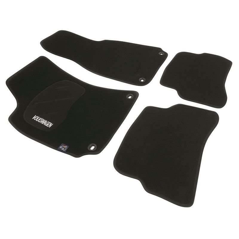 Alfombrillas de coche JGO para Volkswagen Passat (10/96-2/05) y Passat Variant (07-), con diseño diamante y fijación segura. Fabricadas en poliéster de alta calidad con base antideslizante de goma. Incluyen logotipo de Volkswagen y orificios para sujeción. Protegen el interior del vehículo y mejoran la estética y comodidad.