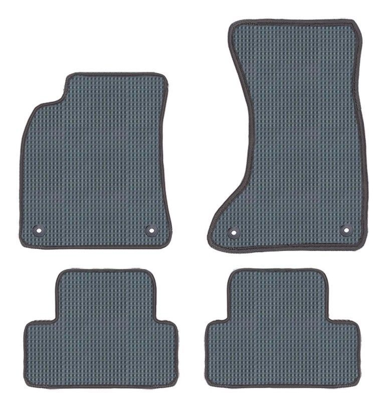 Alfombrillas 'Off Road' para Audi A5, con fijación específica por botones. Diseño ergonómico y textura antideslizante en poliéster y goma. Incluye 2 alfombrillas delanteras y 2 traseras. Ideal para mantener el interior del coche limpio y protegido. Calidad duradera y fácil instalación.
