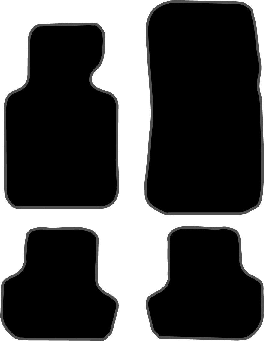 Alfombrillas off-road para BMW E-46 Cabrio (00-06) en color negro, fabricadas en poliéster resistente con base de goma antideslizante. Diseño específico para un ajuste perfecto, con bordes elevados que retienen suciedad y agua. Ideales para proteger el interior del vehículo y mantenerlo limpio y en perfecto estado.