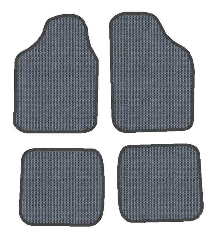 Alfombrillas 'Off Road' para Fiat Uno (96-00) en color gris, fabricadas en poliéster resistente con base de goma antideslizante. Diseño ergonómico con textura de rejilla para mayor tracción y protección contra suciedad y agua. Incluye 4 piezas: dos delanteras con forma adaptada y dos traseras cuadradas. Ideal para mantener el interior del coche lim