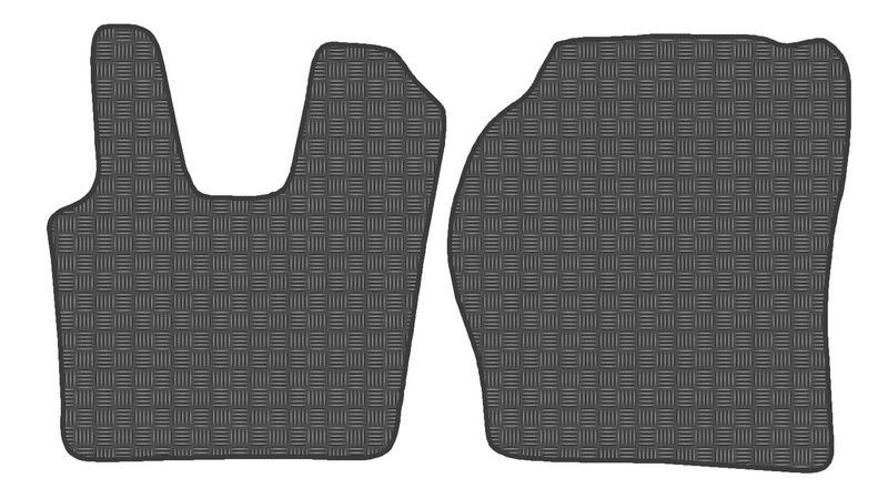 Alfombrillas 'Off Road' negras para Scania SR (12-18), fabricadas en poliéster resistente con base de goma antideslizante. Diseño cuadriculado y corte específico para un ajuste perfecto, protegiendo el interior del vehículo de suciedad y humedad. Ideales para conductores que buscan calidad y durabilidad en sus accesorios de cabina.