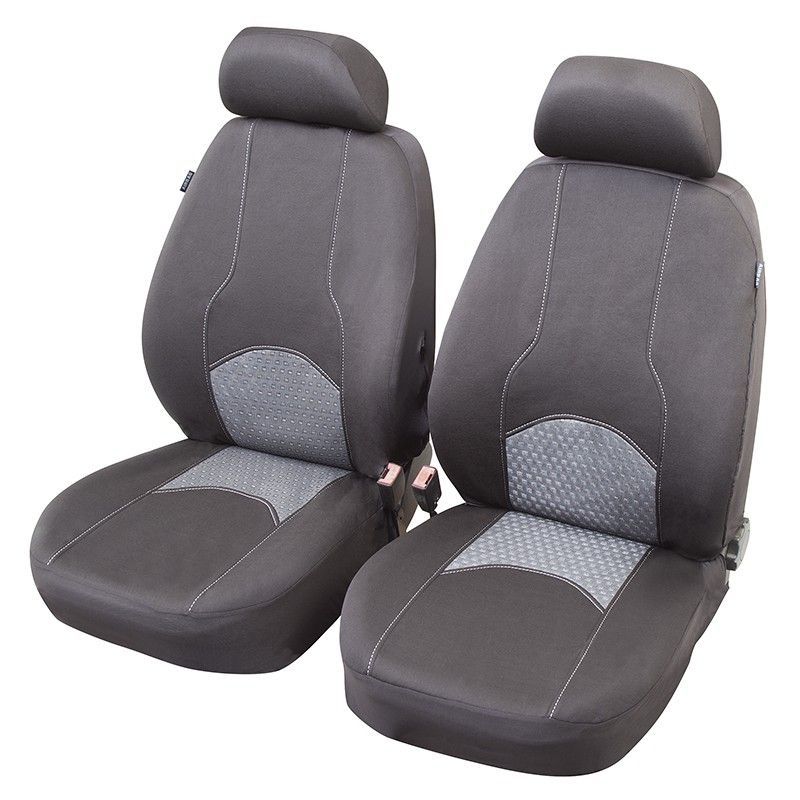 Fundas interiores para asientos de coche JGO Moscu T1, calidad elegante y diseño moderno. Fabricadas en poliéster y textil resistente, con costuras blancas y paneles en textura geométrica para mayor comodidad y estilo. Ideales para adultos que buscan proteger sus asientos con un toque sofisticado y duradero. Fáciles de instalar y mantener.