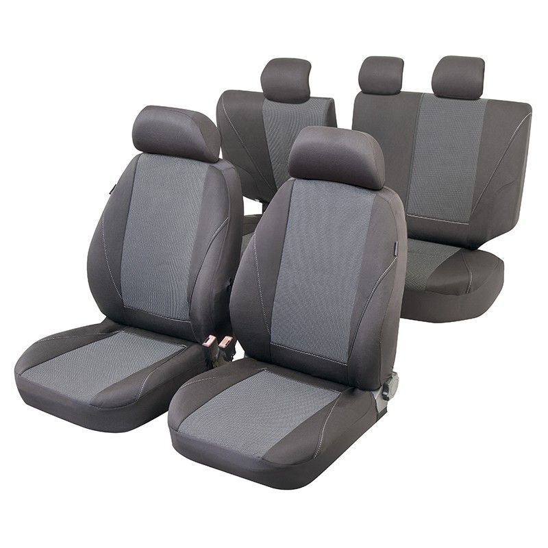 Fundas interiores para coche JGO modelo PEKIN T3, calidad luxury. Diseño ergonómico en color gris con textura perforada para mayor comodidad y transpirabilidad. Fabricadas en poliéster y textil de alta calidad, ofrecen protección completa a los asientos del vehículo. Incluyen fundas para reposacabezas y ajuste perfecto. Ideal para adultos que busca