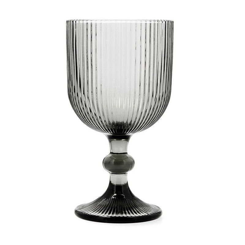 Juego de 6 copas de vidrio en tono gris fosil, con elegante diseño de rayas verticales y base texturizada. Ideal para servir vino, agua o cócteles con estilo. Fabricadas en vidrio de alta calidad, estas copas aportan un toque sofisticado a tu mesa. Perfectas para ocasiones especiales o uso diario en casa.