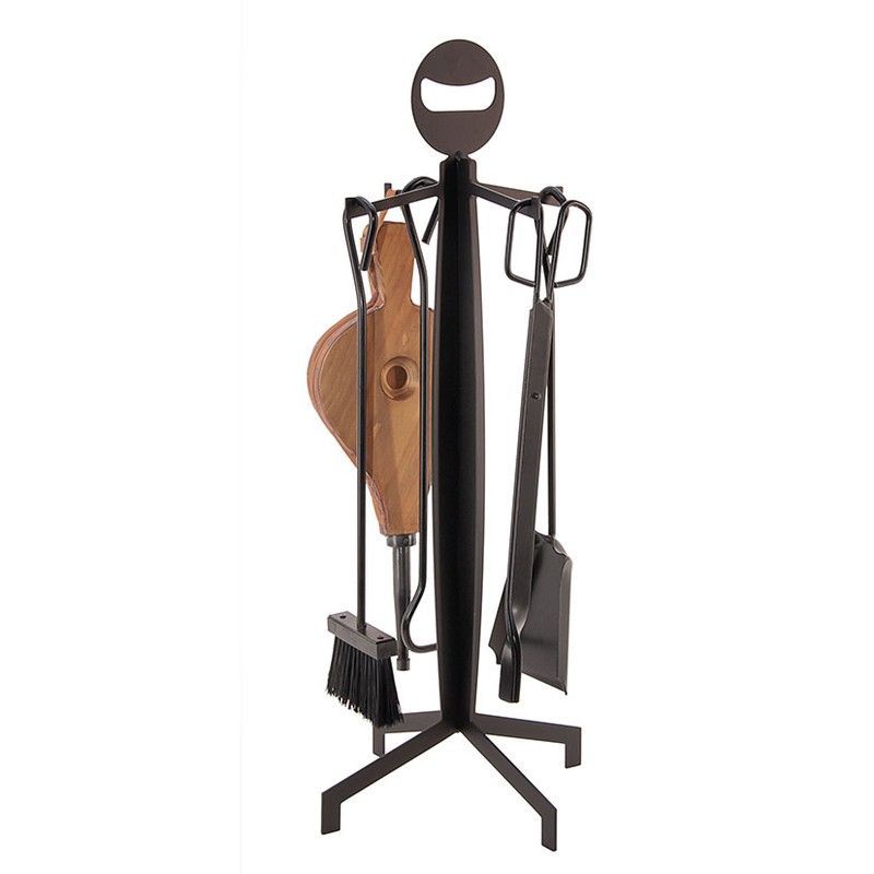 Juego de accesorios para chimenea de 5 piezas con soporte metálico negro y detalles en madera. Incluye pala, escobilla, pinza, cuchara y tapa. Diseño elegante y funcional para mantener tu chimenea limpia y organizada. Ideal para hogares con hogar de leña o chimenea tradicional. Materiales resistentes y acabado duradero.