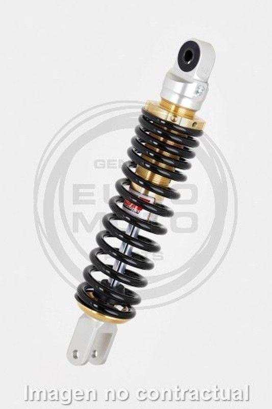 Amortiguador trasero YSS gas regulable, ideal para motocicletas y vehículos motorizados. Fabricado en acero inoxidable y metal de alta resistencia, con muelle negro y detalles dorados. Ofrece ajuste preciso para mayor comodidad y control en carretera. Perfecto para entusiastas que buscan rendimiento y durabilidad.