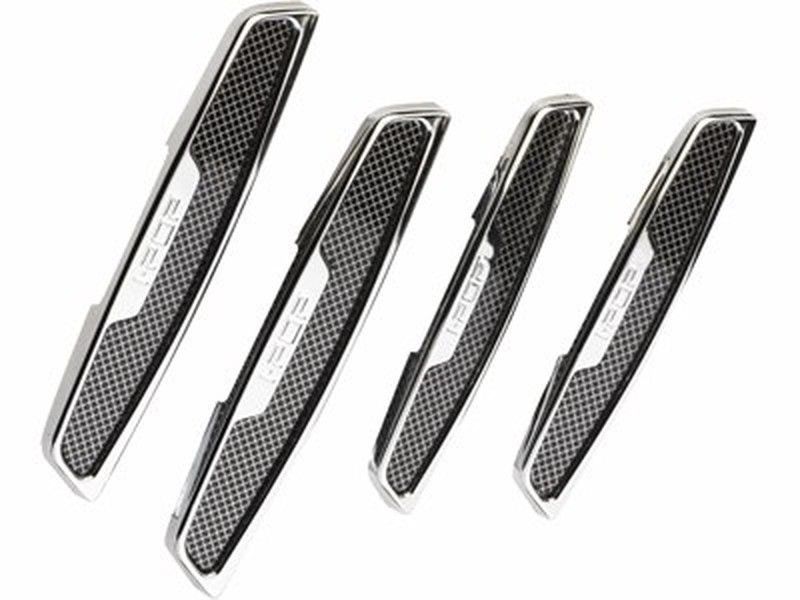 Juego de 4 protectores de puerta cromados con acabado en fibra de carbono y detalles en acero inoxidable. Diseño elegante y resistente para proteger las puertas de tu vehículo de arañazos y golpes. Ideal para coches con estilo deportivo o premium. Fácil instalación y acabado de alta calidad.