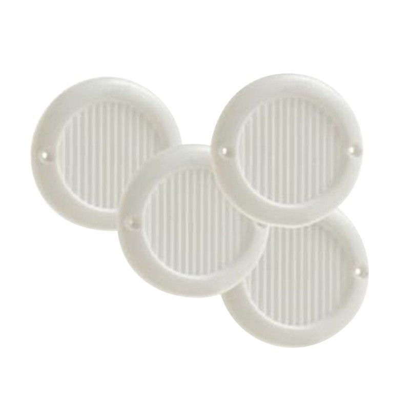 Kit de 4 rejillas de ventilación blancas de plástico ABS, ideales para calentadores de agua. Diseño circular con ranuras verticales para una ventilación eficiente. Fáciles de instalar con tornillos. Perfectas para mantener la seguridad y el rendimiento de tu calentador.