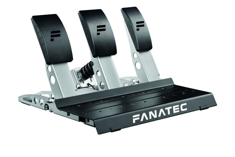 Kit de pedales Fanatec para simuladores de conducción, ideal para entusiastas de los juegos de carreras. Fabricado con estructura metálica resistente y acabados en negro y plateado, ofrece una experiencia realista y precisa. Perfecto para uso con volantes de gaming y sistemas de simulación profesional.