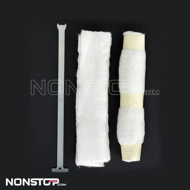 Kit de fibra para escape con interior para Gas Gas TXT Trial 2023-actual. Incluye fibra de alta resistencia y herramienta metálica para instalación. Ideal para motocicletas de trial, mejora el rendimiento y durabilidad del sistema de escape. Fácil de instalar y compatible con modelos actuales.