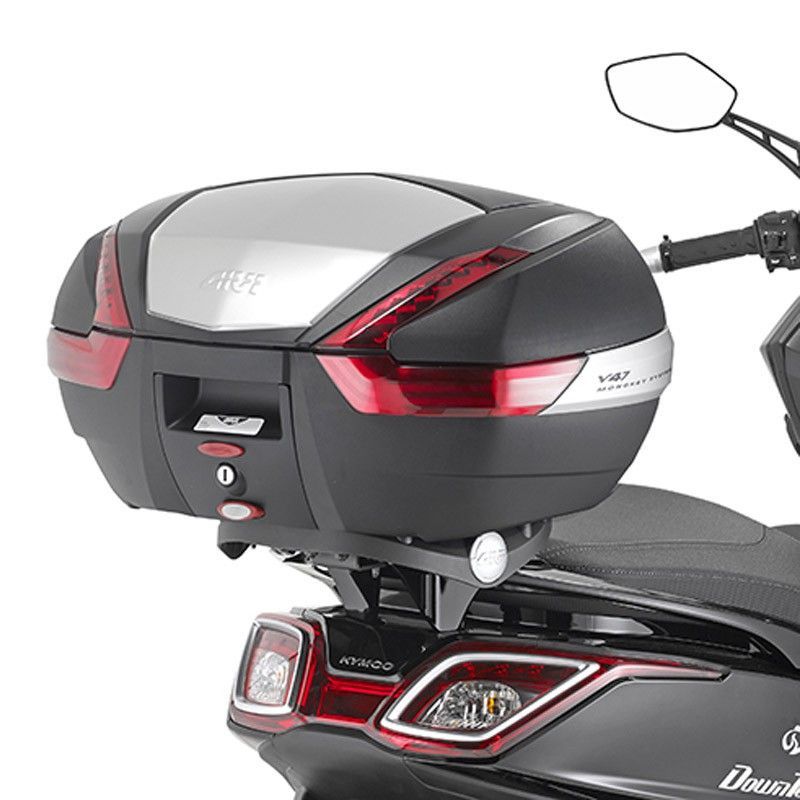 Kit de fijación Givi para maleta trasera en motocicletas Kymco SuperDink ABS 125i / 350i (2015-2021). Diseño robusto y aerodinámico con luz trasera integrada. Fabricado en plástico resistente y componentes metálicos para mayor seguridad. Ideal para viajes largos y transporte seguro de equipaje. Instalación sencilla y compatible con maletas Givi. Au