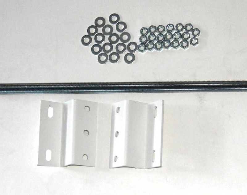 Kit de suspensión para pantalla de proyección Oray Squar Max 300 cm, ideal para instalaciones profesionales o hogareñas. Incluye pernos largos, abrazaderas metálicas blancas y accesorios de fijación. Fabricado en acero inoxidable y metal resistente, garantiza una instalación segura y duradera. Perfecto para pantallas grandes en salas de cine en cas