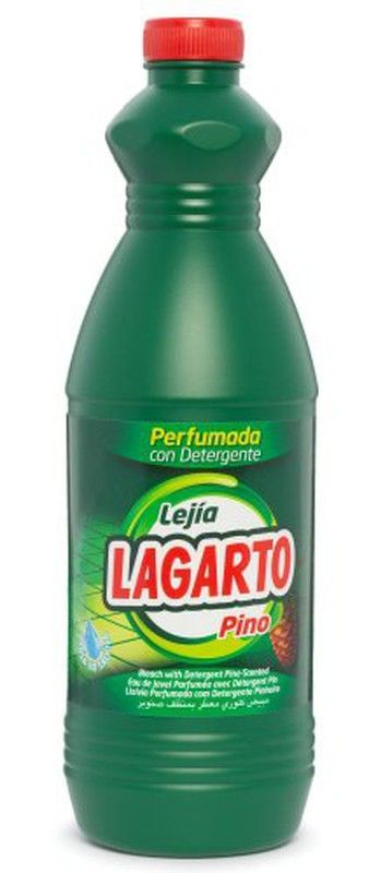 Lejía Lagarto Pino de 1.5 Lt, perfumada con detergente para una limpieza profunda y aroma fresco de pino. Ideal para blanquear y desinfectar ropa y superficies. Botella práctica con tapa roja para un uso seguro y cómodo. Perfecta para el hogar y uso diario.