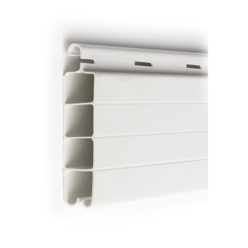 Lama de PVC recta de 50 mm en color blanco, ideal para persianas y estores. Tira de 2 metros con perfil hueco y ranuras para fácil instalación. Resistente, ligera y duradera, perfecta para decoración de ventanas en hogares y comercios. Fácil de limpiar y adecuada para uso interior y exterior.