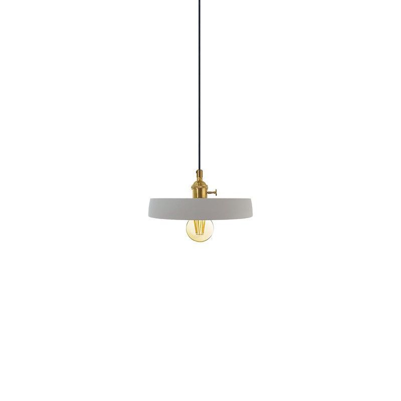 Lámpara colgante CM5041 Lumiere con pantalla blanca y acabado dorado, ideal para espacios modernos. Fabricada en metal y vidrio, ofrece un diseño minimalista y elegante. Perfecta para cocinas, comedor o salón, con bombilla visible que aporta un toque industrial. Cable negro delgado para un montaje sencillo y estético.