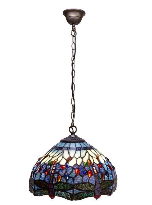 Lámpara colgante Belle Epoque con diseño Tiffany, ideal para decorar espacios como comedor, sala o entrada. Fabricada con vidrio tallado en tonos azules, blancos y rojos, y estructura metálica en acabado oscuro. Su estilo vintage y elegante aporta un toque sofisticado a cualquier ambiente. Diámetro de 30 cm. Perfecta para crear una iluminación cáli