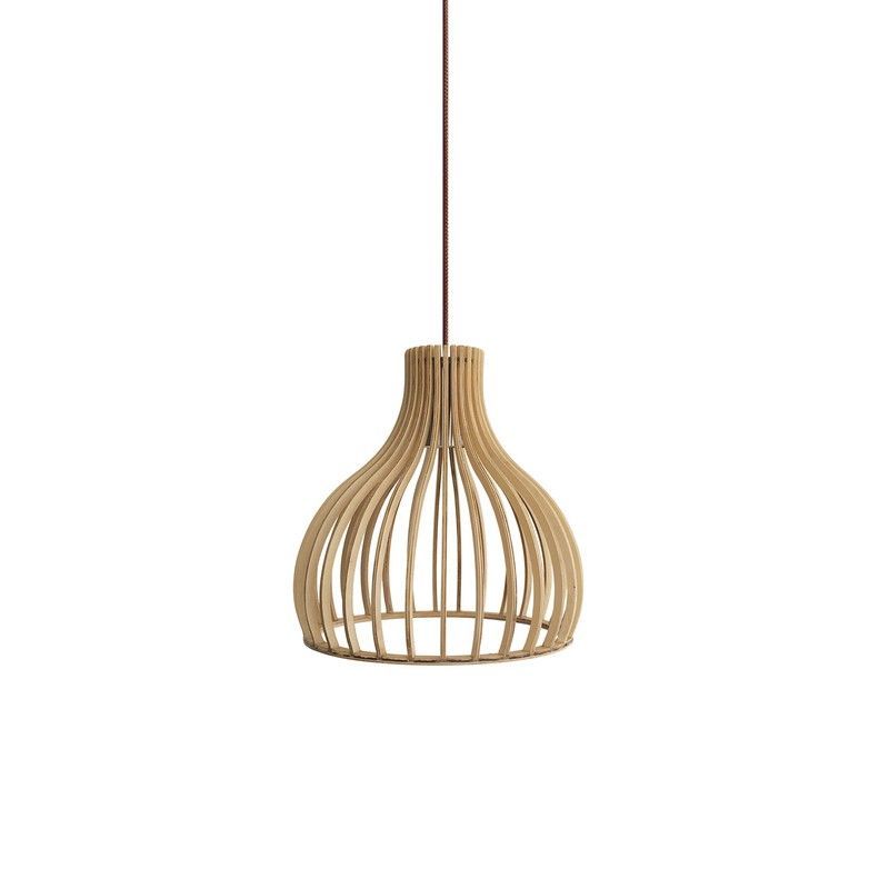 Lámpara colgante MAGNOLIA de diseño elegante y minimalista, fabricada en madera natural. Ideal para espacios como comedor, cocina o salón que buscan un toque rústico y moderno. Su forma campana y estructura de varillas aportan luz cálida y estilo escandinavo. Perfecta para decorar hogares con gusto por la madera y la sencillez.