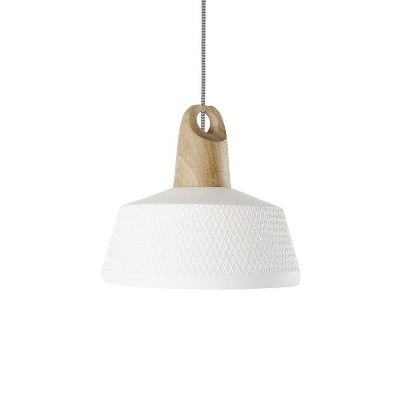 Lámpara colgante MD2302-W Lumiere con pantalla blanca texturizada y acabado en madera natural. Diseño moderno y minimalista ideal para cocinas, comedor o espacios de estilo escandinavo. Fabricada con plástico y madera de alta calidad, ofrece una iluminación cálida y elegante. Perfecta para decorar interiores con un toque sofisticado y funcional.