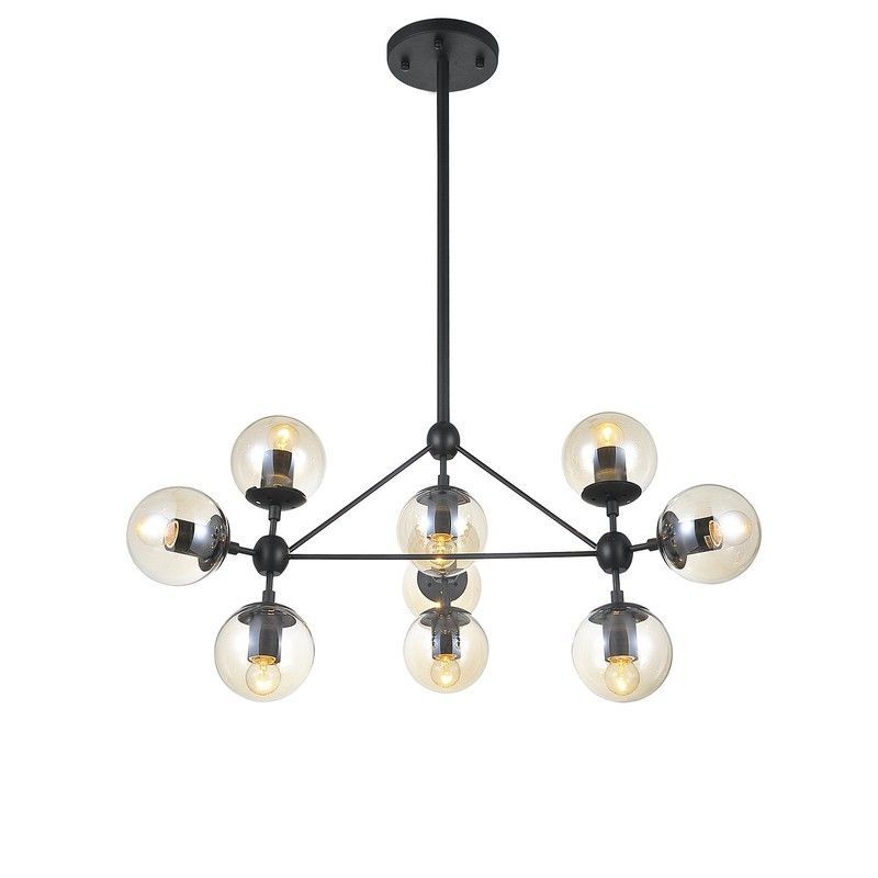 Lámpara colgante MD2373-980BK Lumiere con diseño moderno y elegante, ideal para iluminar espacios como comedor o sala. Fabricada en metal negro y vidrio transparente con bombillas de filamento dorado que aportan un toque cálido y sofisticado. Su estructura geométrica con nueve luces crea un ambiente acogedor y contemporáneo. Perfecta para interiore