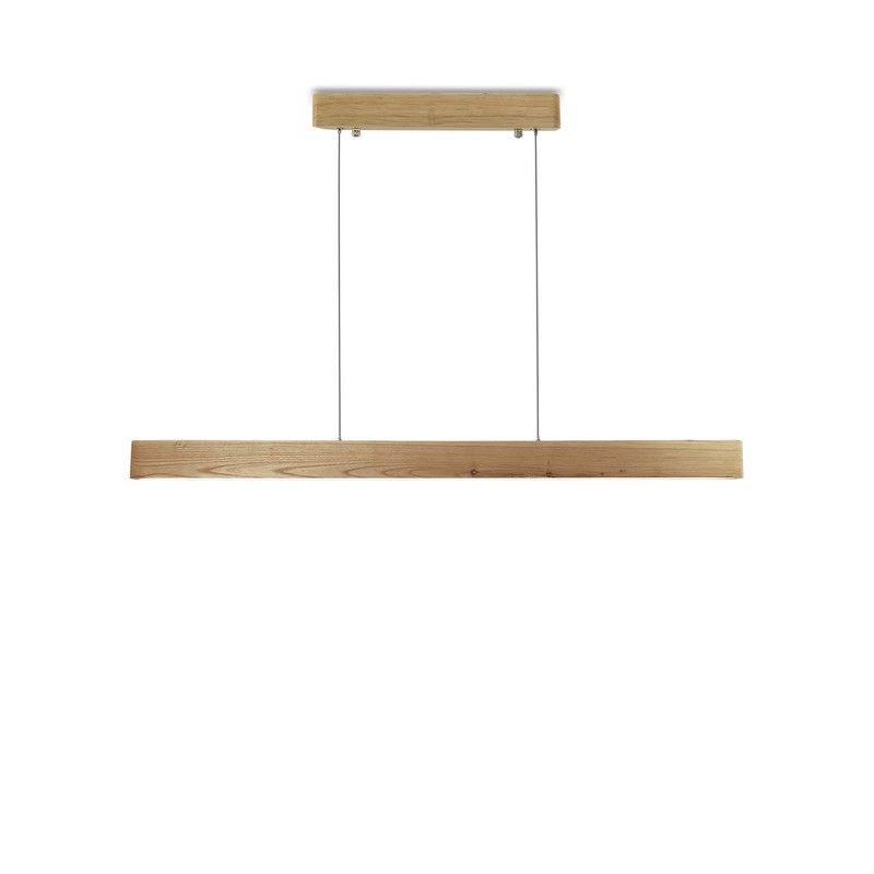 Lámpara colgante MD2420-NAT de Lumiere, con diseño minimalista y estructura rectangular en madera natural. Ideal para iluminar espacios como comedor, cocina o salón con estilo escandinavo. Fabricada con madera de alta calidad, ofrece una luz cálida y ambiental. Dimensiones: largo 90 cm, ancho 2 cm, alto 5 cm. Perfecta para decoraciones modernas y n