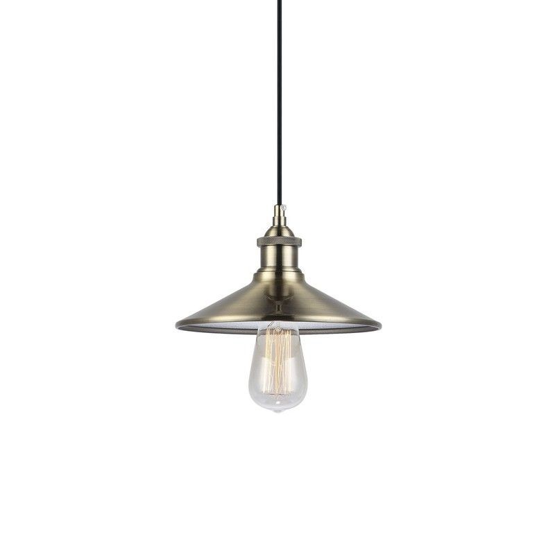 Lámpara colgante MD3073-ABE Lumiere con pantalla cónica de metal en acabado bronce antiguo y cable negro. Diseño industrial retro ideal para cocinas, comedores o espacios con estilo vintage. Incluye bombilla Edison visible con filamento, aportando un toque cálido y decorativo. Perfecta para crear ambientes acogedores y con personalidad.