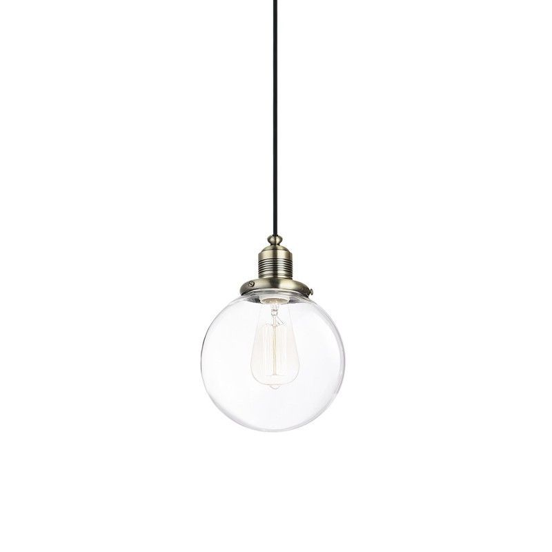 Lámpara colgante MD3186-CL Lumiere con diseño industrial vintage, ideal para espacios modernos o rústicos. Fabricada con vidrio transparente y detalles metálicos dorados, incluye bombilla de filamento visible. Perfecta para cocinas, comedores o salones. Cable negro y acabado elegante para un toque decorativo único.
