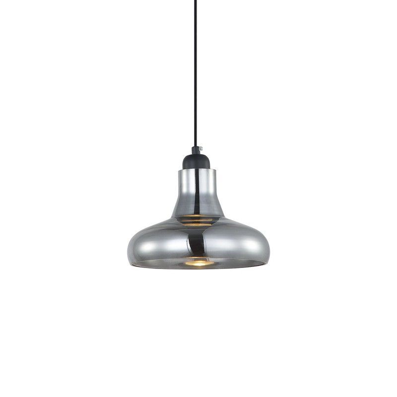 Lámpara colgante MD4090C-SE Lumiere con diseño industrial y acabado plateado mate. Ideal para cocinas, comedor o espacios modernos. Fabricada en vidrio y metal, con cable negro y base cromada. Aporta estilo y luz cálida a cualquier ambiente. Dimensiones: 20 cm de largo, 17 cm de ancho y 145 cm de alto.