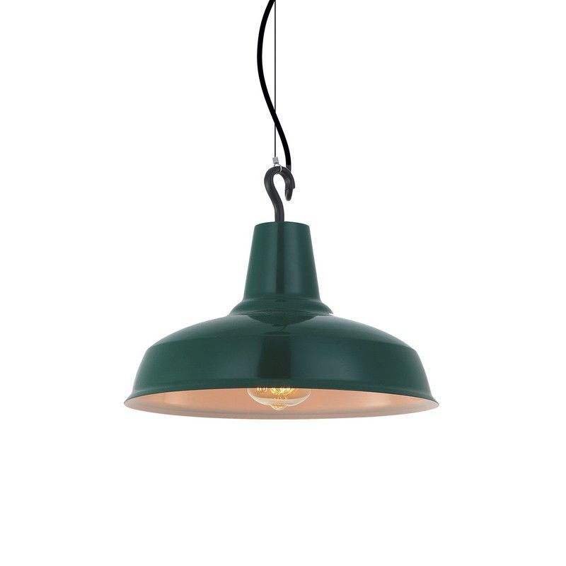 Lámpara colgante MD6168A-280DG de Lumiere, con diseño industrial en metal pintado de color verde oscuro. Ideal para espacios como cocinas, comedores o áreas de trabajo. Su forma de campana y acabado interior cálido crean una iluminación acogedora y funcional. Cable negro y soporte en gancho para una instalación sencilla y estética. Perfecta para de
