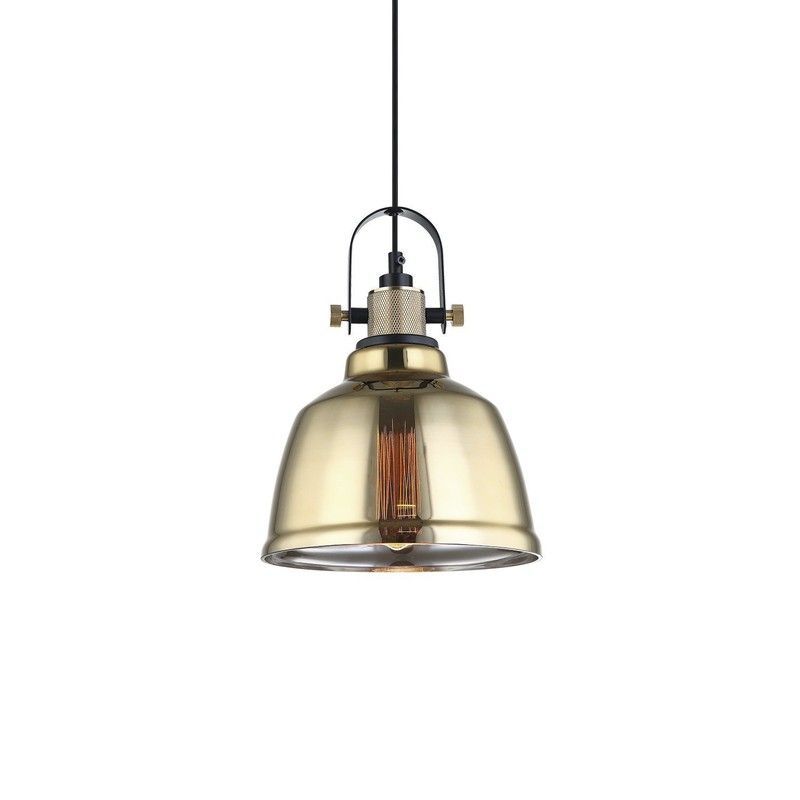Lámpara colgante MD8021-TGD Lumiere con diseño industrial y acabado dorado. Ideal para cocinas, comedores o espacios con estilo vintage. Fabricada en metal de alta calidad, con bombilla tipo filamento visible que aporta un toque cálido y elegante. Cable negro y montaje con arco metálico para una instalación sencilla y estética. Perfecta para crear