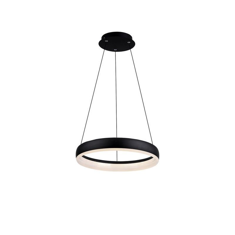 Lámpara colgante MD8148-400BK de Lumiere con diseño moderno y minimalista. Estructura en metal negro mate y anillo luminoso blanco que proporciona una iluminación suave y ambiental. Ideal para cocinas, comedor o espacios de diseño contemporáneo. Fácil instalación y acabado elegante que combina con cualquier estilo interior.