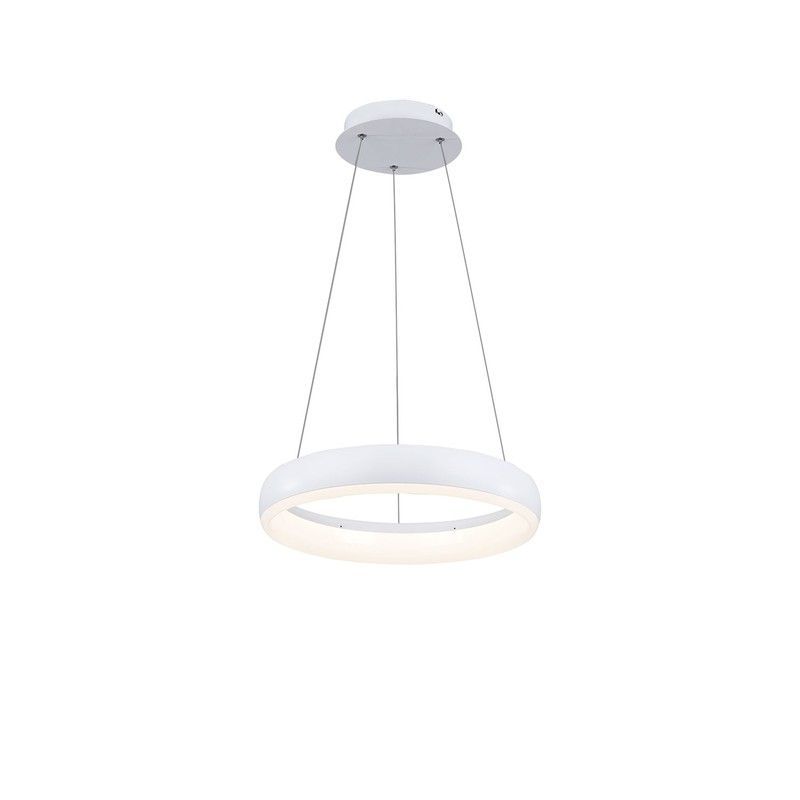 Lámpara colgante MD8148-400WH Lumiere, diseño moderno y minimalista en blanco, ideal para cocinas, comedor o espacios de diseño contemporáneo. Fabricada con plástico y metal, ofrece una iluminación suave y uniforme gracias a su difusor circular. Perfecta para crear ambientes acogedores y elegantes en cualquier hogar.