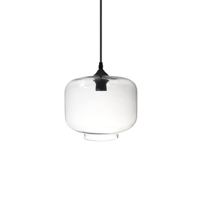Lámpara colgante MSZ12428-CL Lumiere con diseño moderno y minimalista, ideal para espacios como comedor, cocina o salón. Fabricada en vidrio transparente con acabado negro en la conexión superior, aporta luz cálida y elegancia a cualquier ambiente. Su forma redondeada y líneas limpias la convierten en un elemento decorativo funcional y sofisticado.