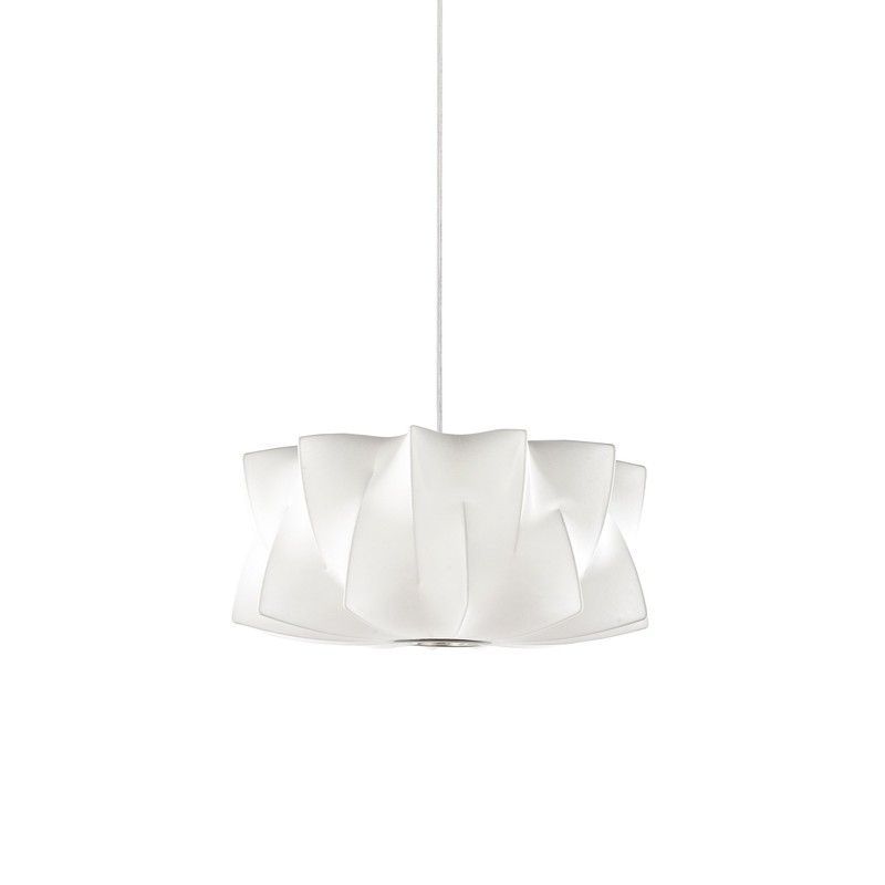 Lámpara colgante ARANYA Lumiere con diseño moderno y elegante, ideal para espacios como comedor, salón o dormitorio. Fabricada en plástico de alta calidad, presenta un acabado blanco con efecto de pliegues que difumina la luz de forma suave y decorativa. Su forma cilíndrica y suspensión sutil la convierten en un elemento de iluminación funcional y