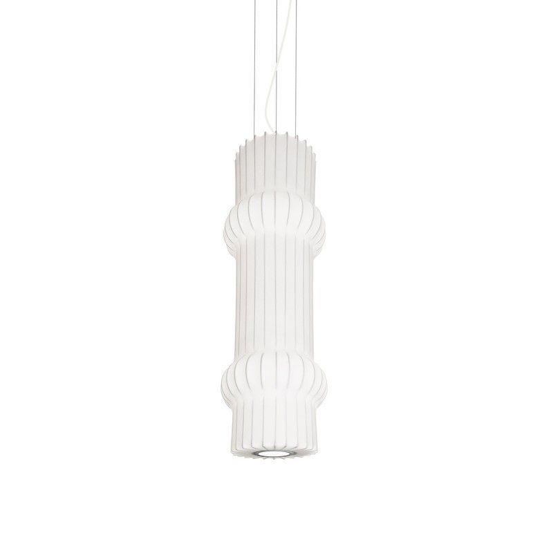 Lámpara colgante TUBI Lumiere de diseño moderno y elegante, ideal para espacios como comedor, salón o cocina. Con acabado blanco mate y estructura cilíndrica con textura ondulada, aporta un toque sofisticado y luminoso. Fabricada en plástico de alta calidad, se instala fácilmente mediante cables finos. Perfecta para crear ambientes cálidos y contem