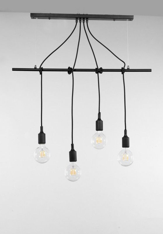 Lámpara colgante Serie Wire Onli con diseño industrial y minimalista, ideal para espacios modernos como comedor, cocina o sala. Fabricada en metal negro y con bombillas de vidrio transparente, ofrece una iluminación cálida y estética. Perfecta para crear un ambiente sofisticado y funcional en tu hogar.