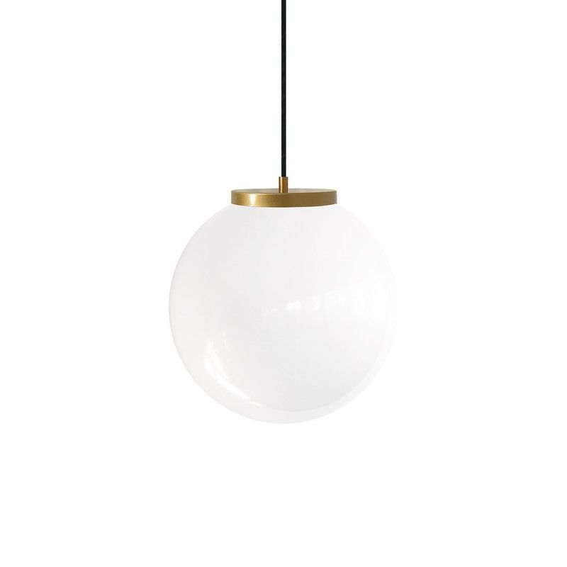 Lámpara colgante VEN PG400 GOL de Lumiere con diseño esférico y acabado moderno. Cuerpo de vidrio opalino blanco, anillo dorado y cable negro. Ideal para iluminar espacios como comedor, cocina o salón con estilo minimalista. Materiales de calidad para una luz suave y ambiental.