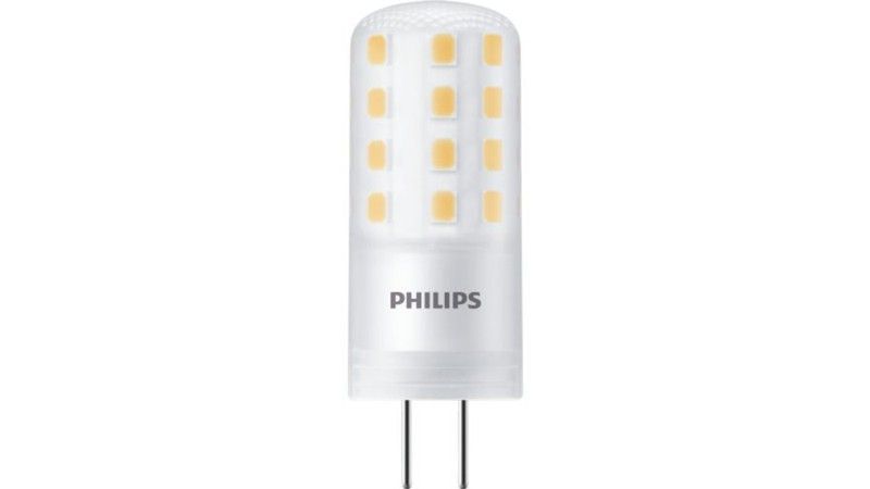 Lámpara LED Philips CorePro en formato cápsula, ideal para iluminación de bajo consumo en hogar y comercio. Con tecnología LED de alta eficiencia, emite luz cálida (827) y reemplaza bombillas de hasta 40W. Diseño compacto con carcasa de plástico y base metálica, perfecta para focos empotrados o lámparas con base GY6.35. Ahorra energía y reduce cost